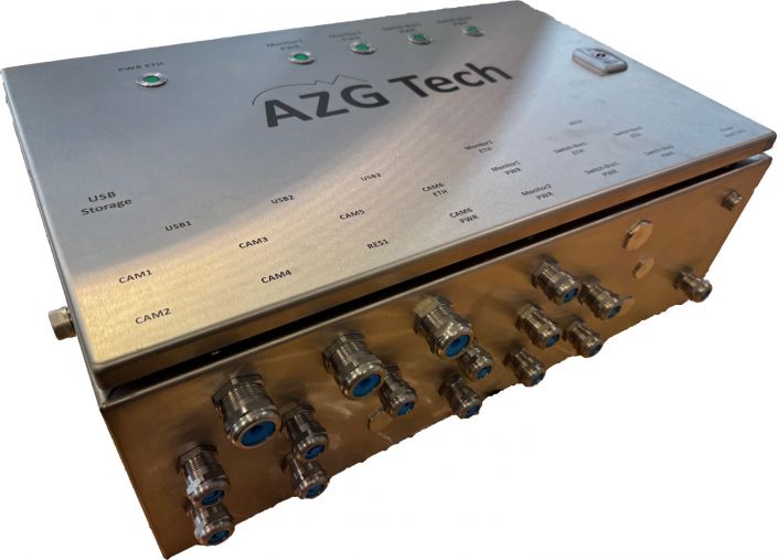 Um weitere Kameras anschließen zu können, die evtl. auch weit entfernt von MRX.ControlBox an Rumpf oder Kran angebaut sind, sind ein oder mehrere Erweiterungsboxen („MRX.SwitchBox“) möglich. Jede Erweiterungsbox bietet die Möglichkeit 4-8 Kameras mit PoE Speisung oder externer Speisung anzuschließen.