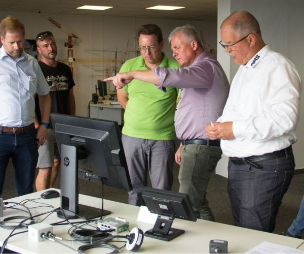 Diese Woche haben wir das erste MRX.KranFunk-System mit Repeater-Funktion an einem Tadano Europe AC7.450-1 der Firma Wiesbauer GmbH & Co. KG angebaut. Durch den Repeater am Rollenkopf, der die Kamerasignale von der Spitze des Hilfsauslegers umlenkt, ist der Begriff der "Abrisskante" obsolet geworden. Die Funkübertragung verläuft stets entlang der Arme und können so nicht unterbrochen werden. Die Reichweite pro(!) Funkstrecke beträgt ca. 180 Meter.
